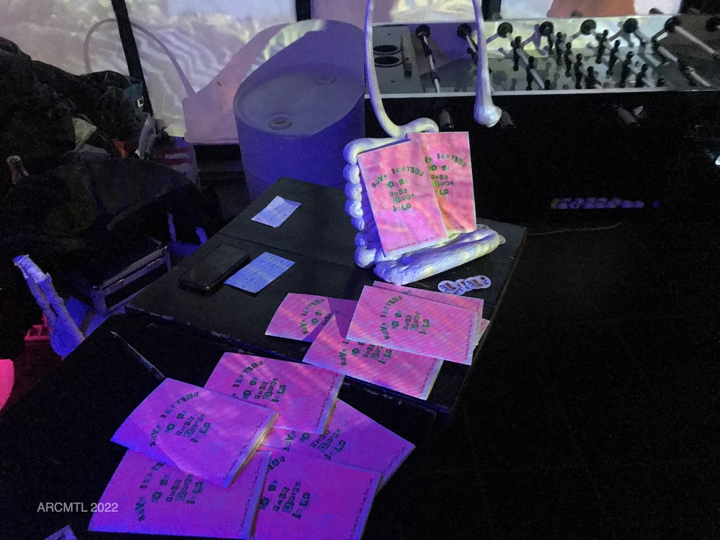 For the 2022 edition of FAIMTL, ARCMTL commissioned a screenprinted collective zine Rotten Candy, curated and printed by artist Tyrin Kelly of Trap Door Printing.