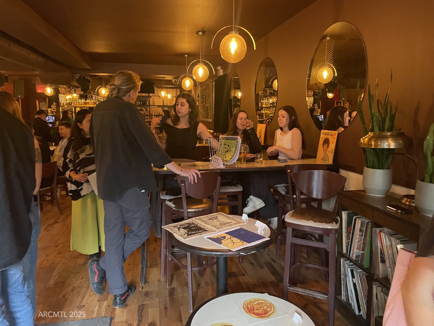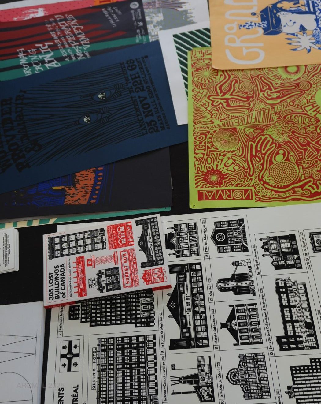 Cette année, nous avons fait la part belle aux designers d’affiches et aux artises en arts imprimés locaux dans le cadre d’une une petite vente pop up au Bar Le Record, un Bar à vinyles du quartier Villeray où la musique des années 40 à aujourd’hui est à l’honneur .